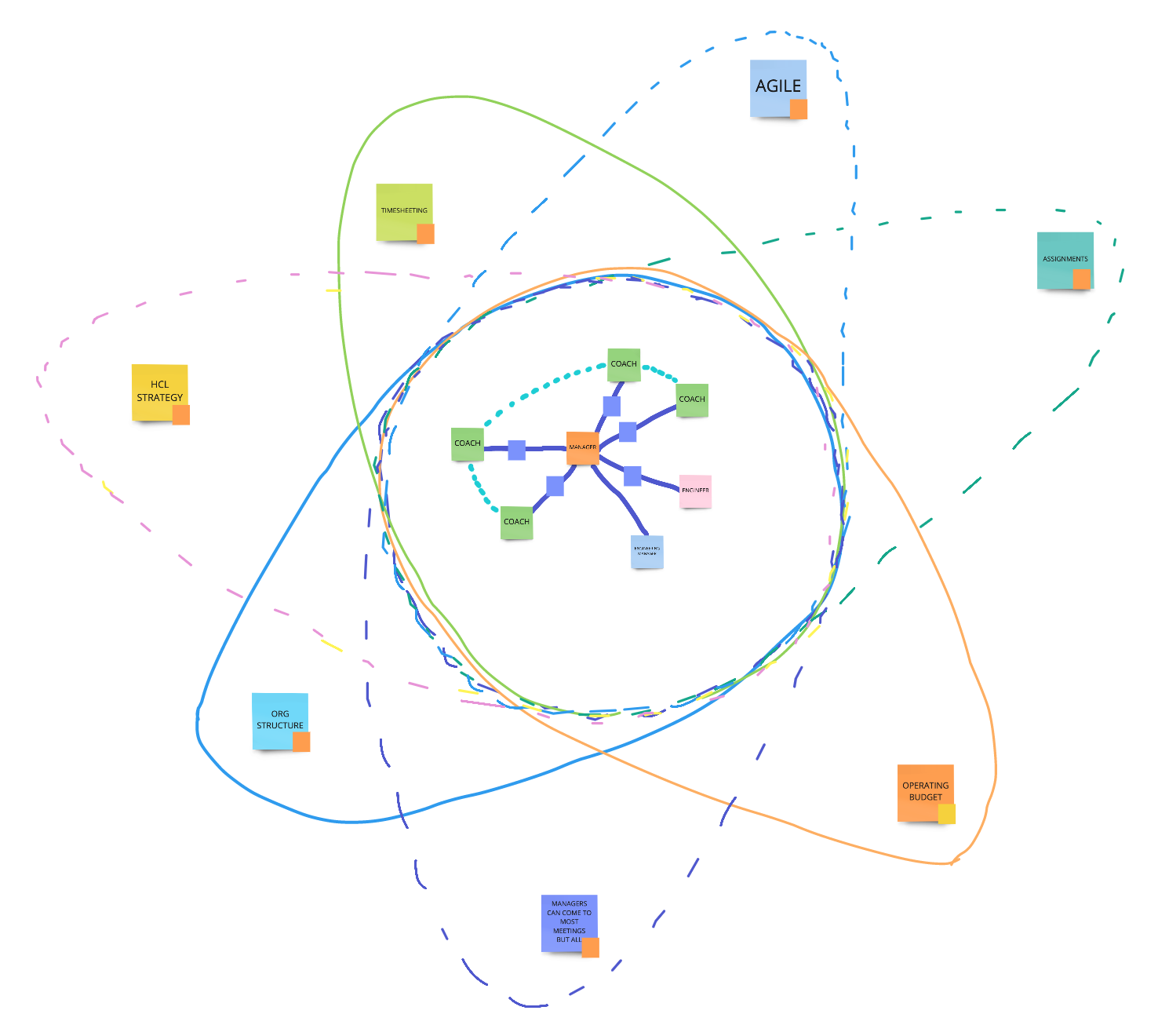 This artefact shows the containers and connections, drawn and labeled during the Enabling Constraints session with a small group.