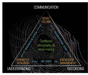 Narrative and messy coherence: in Km narrative serves as a half way house between experience( tacit) and written documents(explicit). the key aspect of SenseMaker® is that the power of interpretation and also engagement rests with the originators of the story. In effect, we want to encourage distributed facilitation and horizontal engagement with ideas in far less structured ways, the key to achieving what I call messy coherence; curation needs to be distributed and to achieve that we need abstract typologies not culturally determined taxonomies. The dangers of epistemic injustice are ever-present with structured approaches to curation. Narrative forms of knowing and communication carry necessary ambiguity which allows them to more readily adapt to changing contexts than written documents. Its all about getting the right level of granularity to allow material to be rapidly blended in unexpected ways to deal with changing circumstances. The more structure the less flexibility.